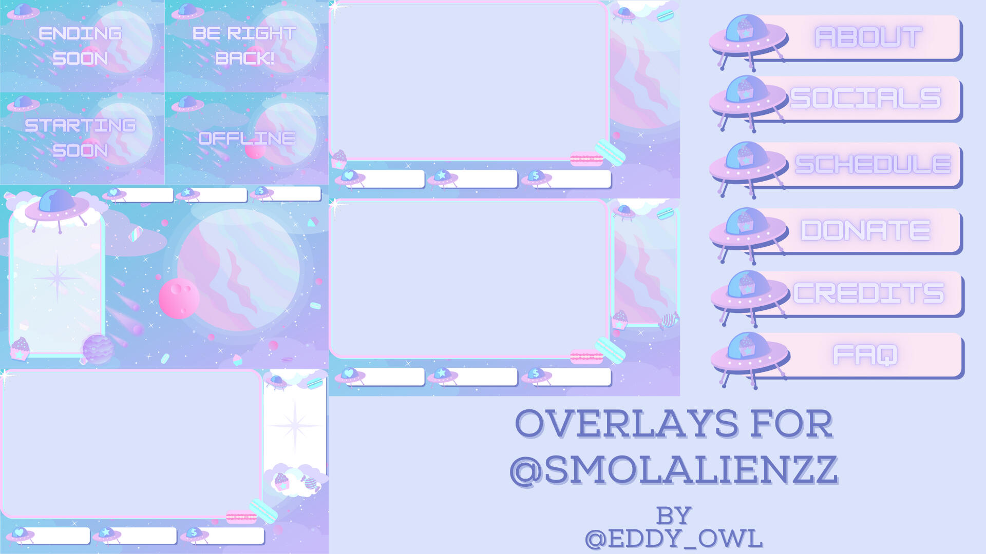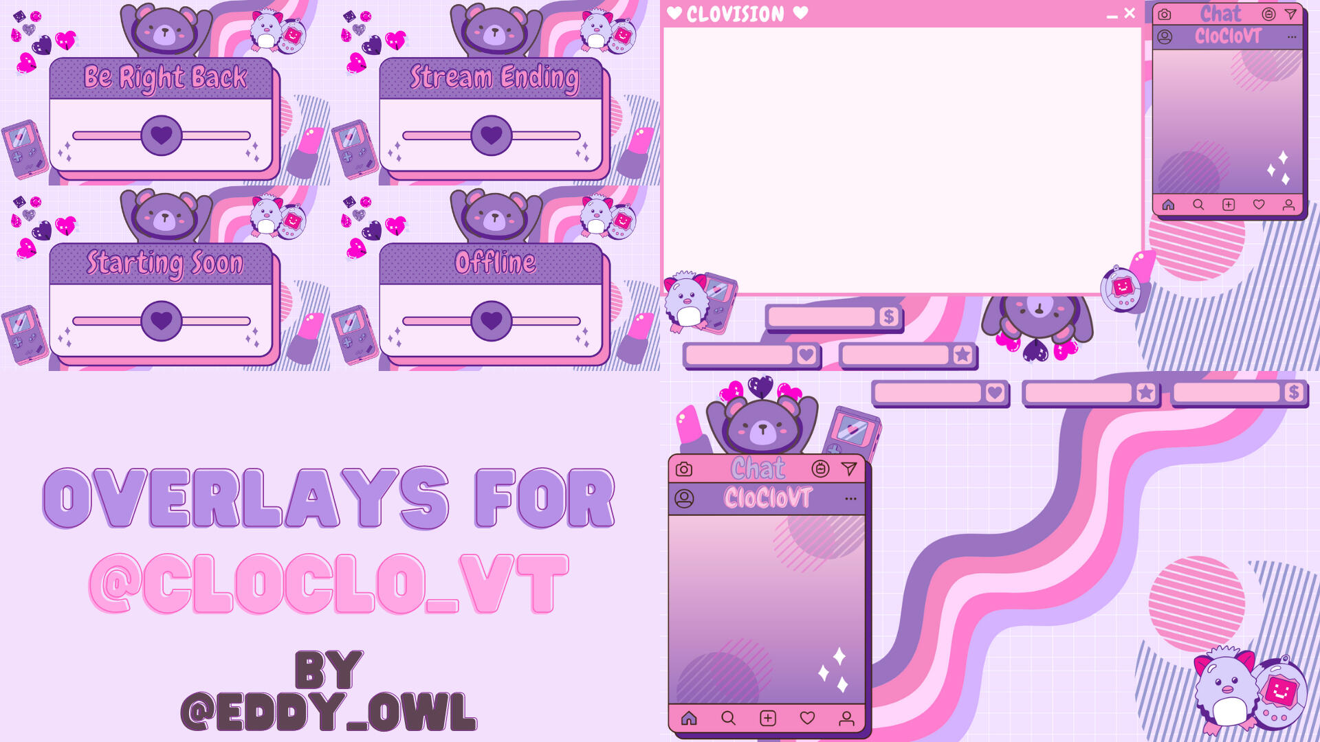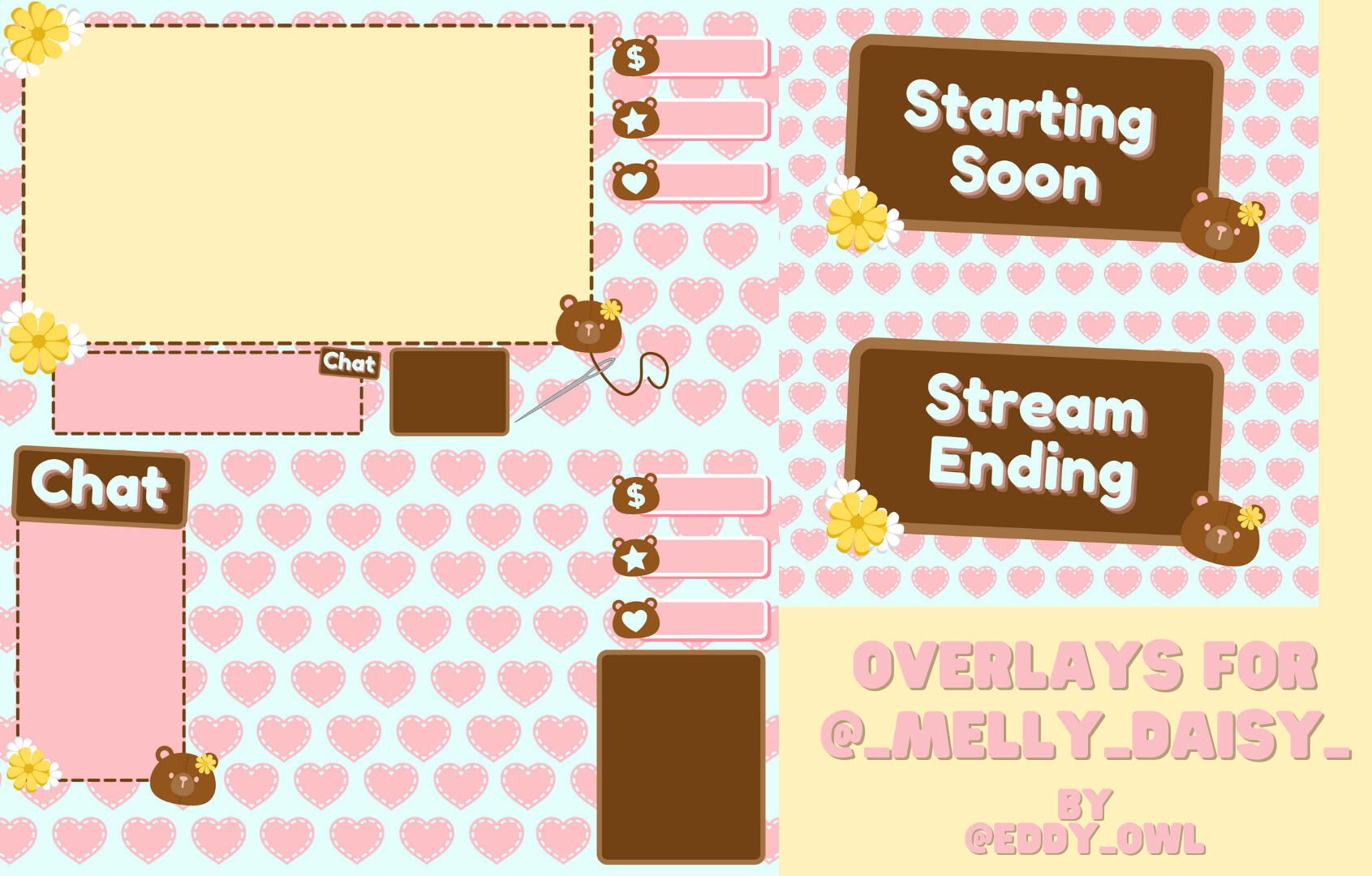 | Set of 2 | $45 | Pick 2 overlays (Just chatting and gaming, 4:3 and 16:9 gaming, etc) |